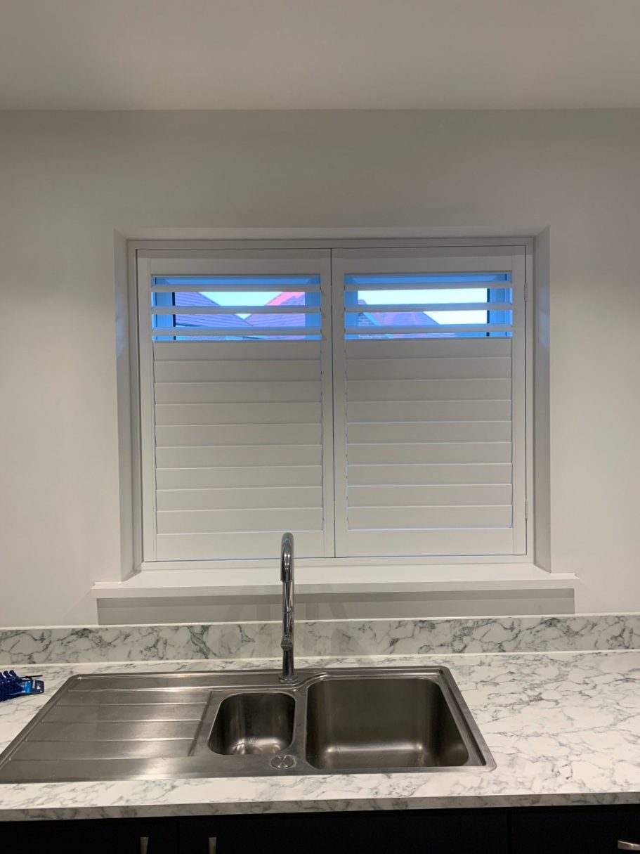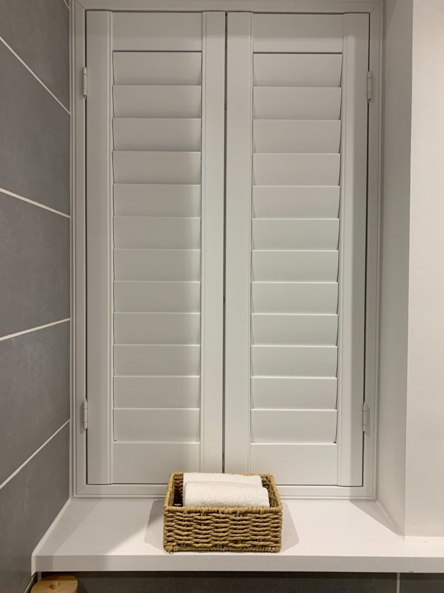 We also offer Faux wood shutters made in the UK. Perfect for Kitchens & Bathrooms too. These have a leadtime of 4 -6 weeks.